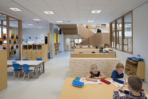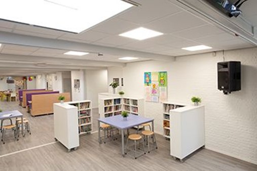 En zo zal de goede inrichting van de open ruimtes ten goede komen aan de organisatie van ons onderwijs. Kinderen kunnen overleggen of juist in stilte werken en er extra instructie krijgen. Het thematisch onderwijs kan hier ook letterlijk de ruimte krijgen. Omdat het gedeelde ruimtes zijn kunnen we groepjes kinderen uit verschillende groepen samen laten werken en leren.