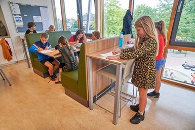 Om het gebouw straks optimaal te gebruiken willen we de open ruimtes inrichten als zogenaamde leerpleinen. Vanuit de klas zullen kinderen hier geregeld in groepjes aan het werk gaan. De extra ondersteuning zal ook op het leerplein gegeven worden. Zo hebben we straks zowel in de klas als in de rest van de school de ruimte om goed met de elkaar aan de slag te gaan.